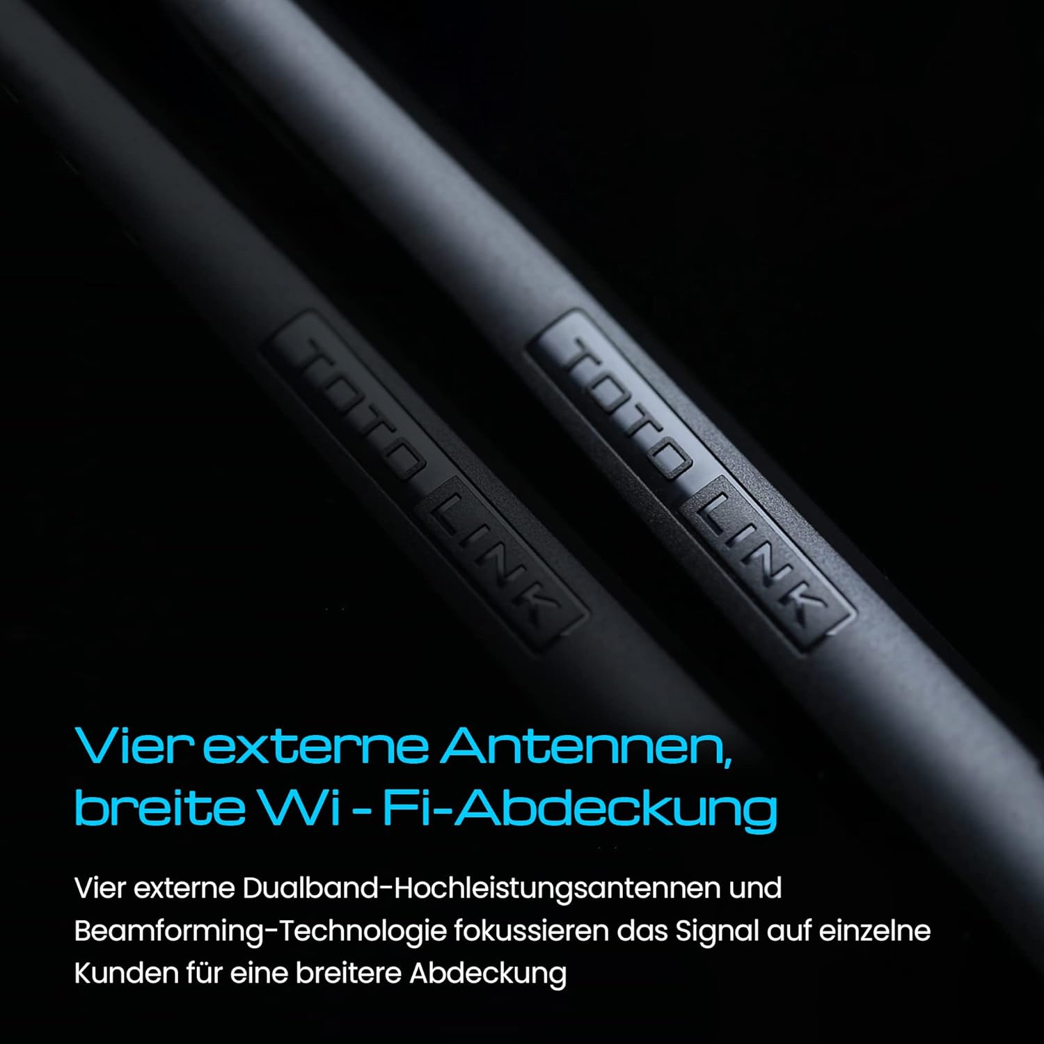 Keine Sorgen um Abdeckung und Reichweite – Vier externe Dual-Band Antennen des Router Wifi 6 5dBi fokussieren das Signal auf weit entfernte Clients für eine größere Reichweite.