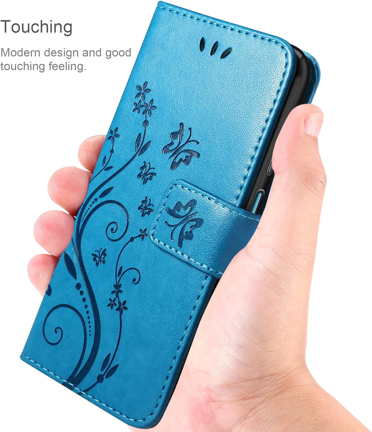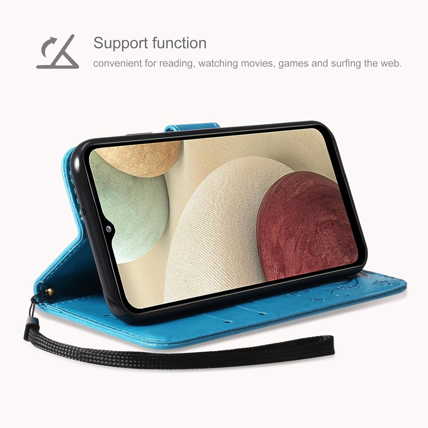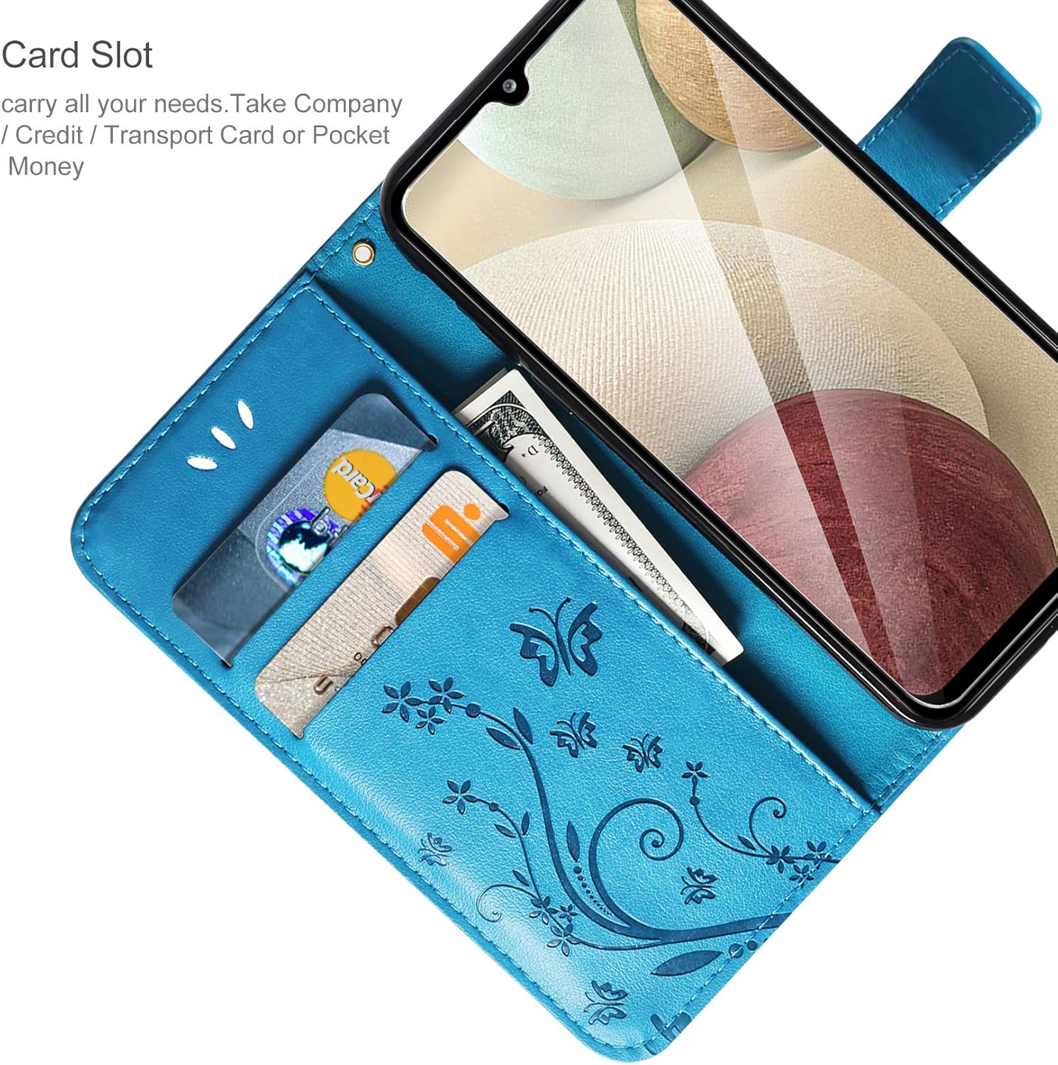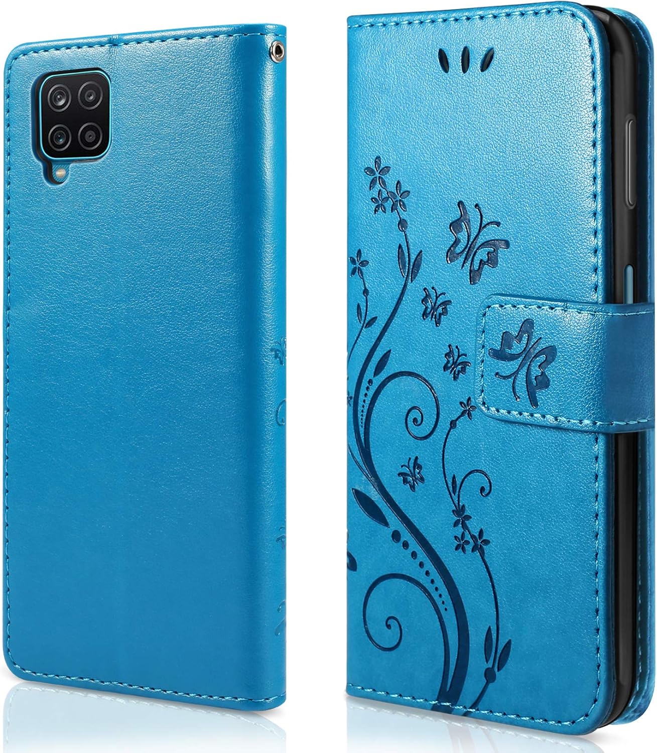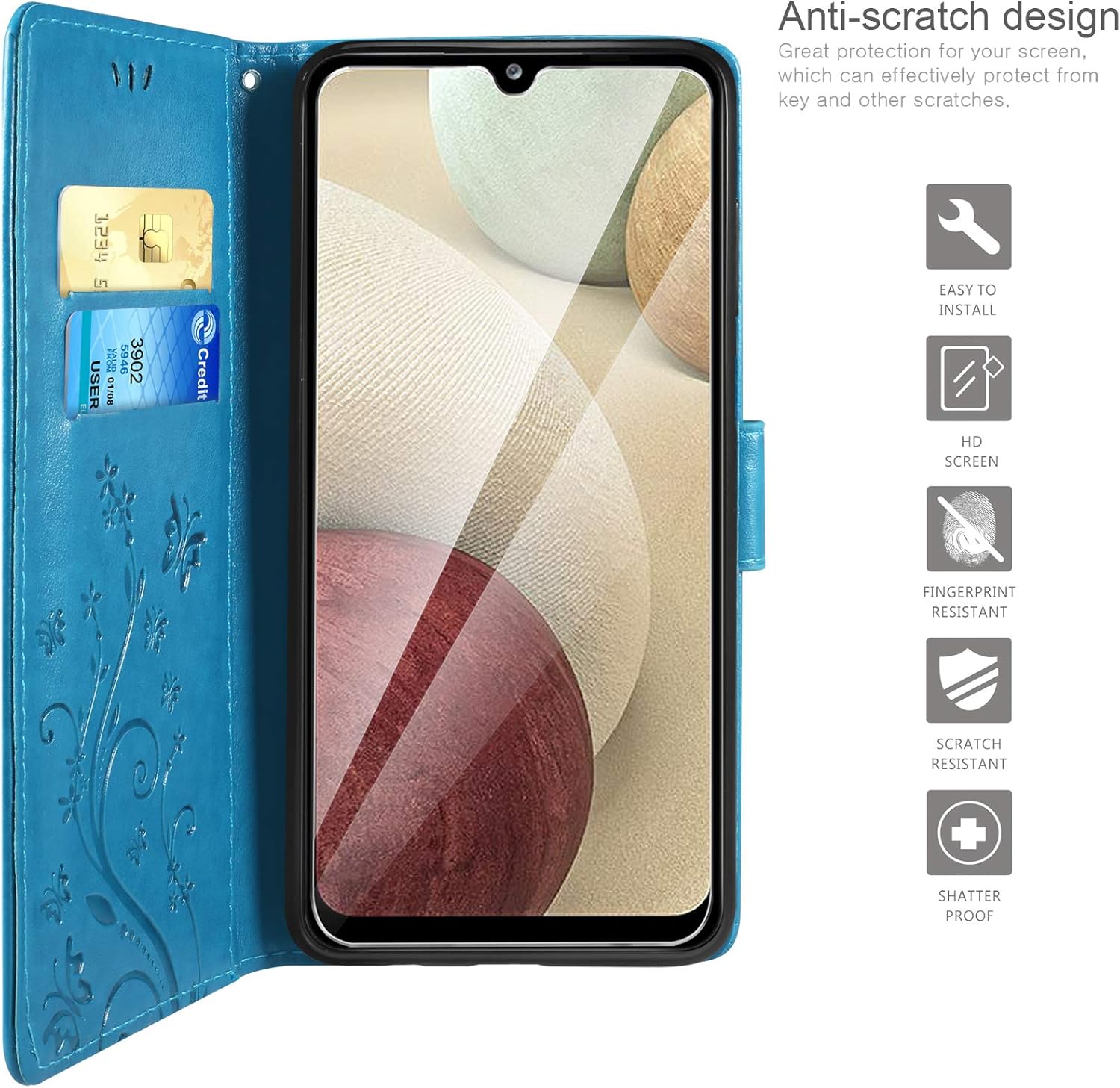 Besserer Schutz: Die multifunktionale Klapphülle aus PU-Leder im Brieftaschenstil mit Schmetterlingsblume ist kompatibel mit dem Samsung Galaxy A12 und verfügt über ein weiches TPU-Futter und eine hochauflösende Schutzfolie, die den Bildschirm vor Staub und Kratzern schützen kann.