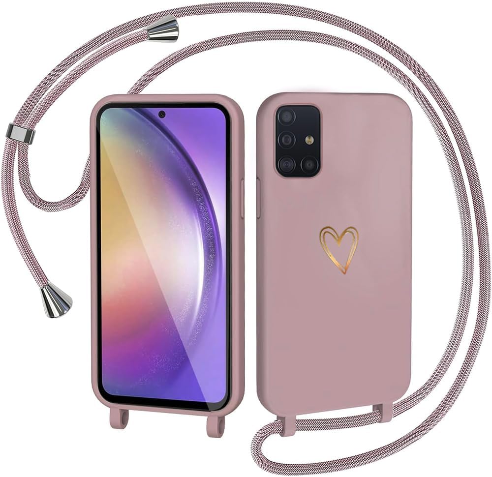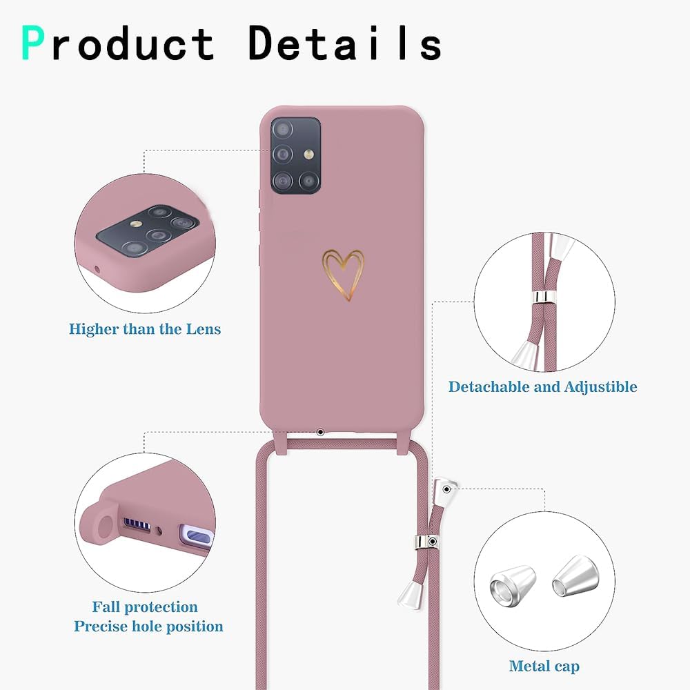 [Premium Silikonhülle mit Band]: Stylish Handyband hülle mit goldenem Liebesherzmuster wurde für Samsung Galaxy A71 4G (SM-A715F) entwickelt. Machen Sie Ihr Mobiltelefon einzigartig und modisch. Samsung Galaxy A71 4G Necklace Handyhülle mit Kordel verwandelt Ihr Handy in ein modisches Accessoire, es kann leicht als Handtasche oder Umhängetasche getragen werden, wenn Sie unterwegs, einkaufen oder im Büro sind.