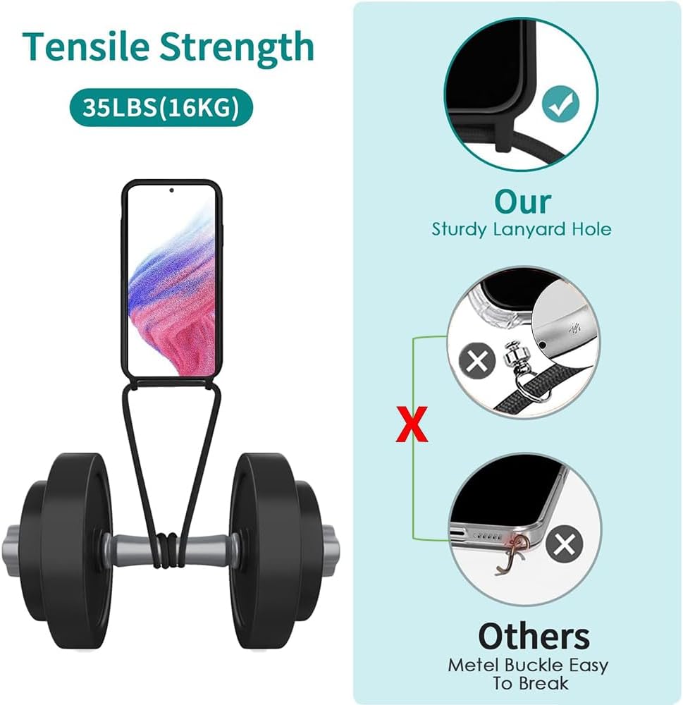 [Verbesserte Einteilige Handyhülle]: Samsung A71 4G Hülle mit Band das die Ösen Halterung für die Kordel aus Silikon, an ein Stück gegossen wurde, die rundherum zu ist, Hält ewig die Schnüre, Robuste Hülle zum umhängen, die stabiler ist als andere Umhängetaschen mit Metallringen. Dadurch kann hier nichts mehr an Ihr Klamotten hängen bleiben, sie müssen nicht mehr unter Metallösen leiden, die immer leicht zu öffnen oder fallen lassen sind.