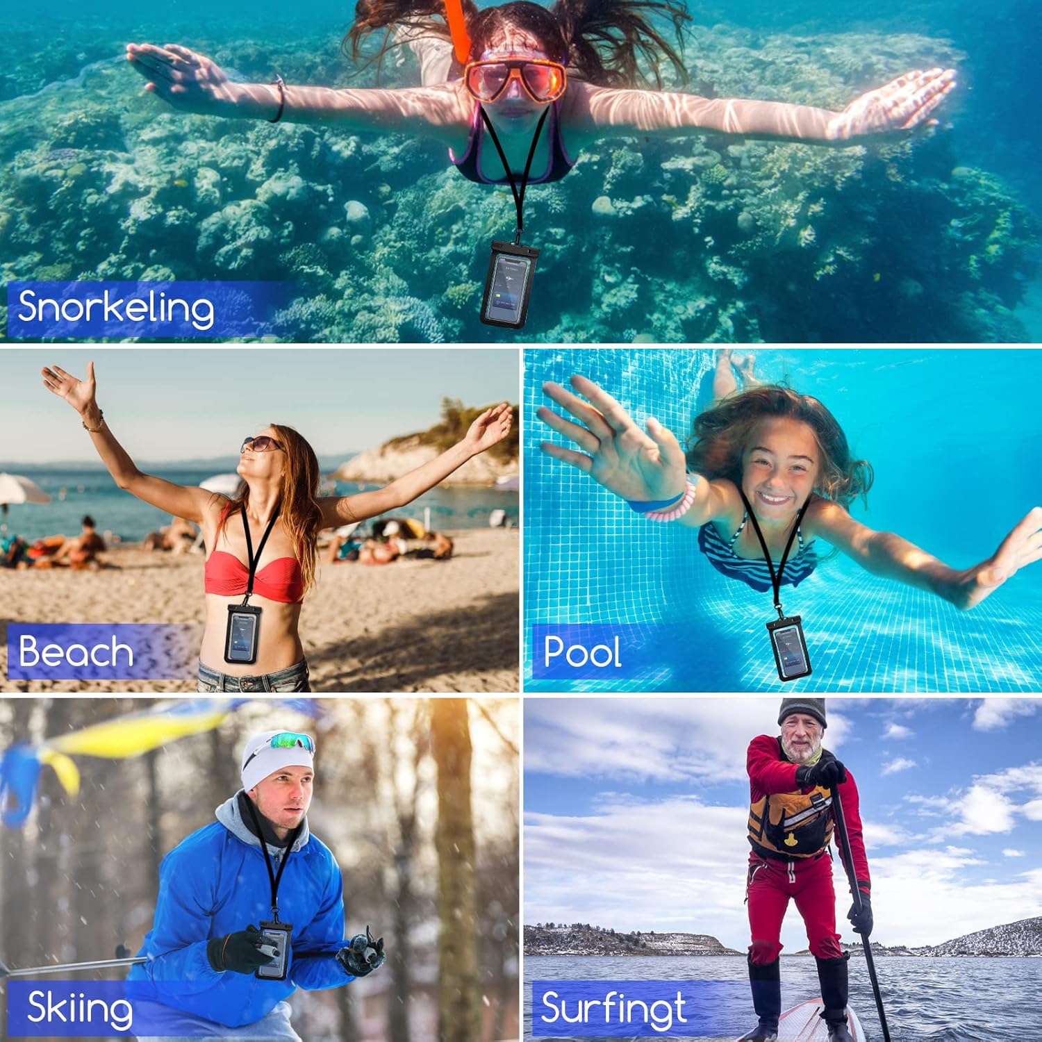 【IPX8 Certified Waterproof Pouch】 Die wasserdichte Handytasche mit exzellenter IPX8 Wasserdichtigkeit bietet vollen Schutz für Ihr Handy bis zu 30m unter Wasser. Der gebündelte 2er-Pack wasserdichte Tasche ist perfekt für Sie und Ihre Familie beim Schwimmen, Strand, Tauchen und andere Aktivitäten zu verwenden. Jede Tasche wird mit einer Trageschlaufe geliefert, um das Tragen zu erleichtern, und die Länge kann nach Bedarf angepasst werden.