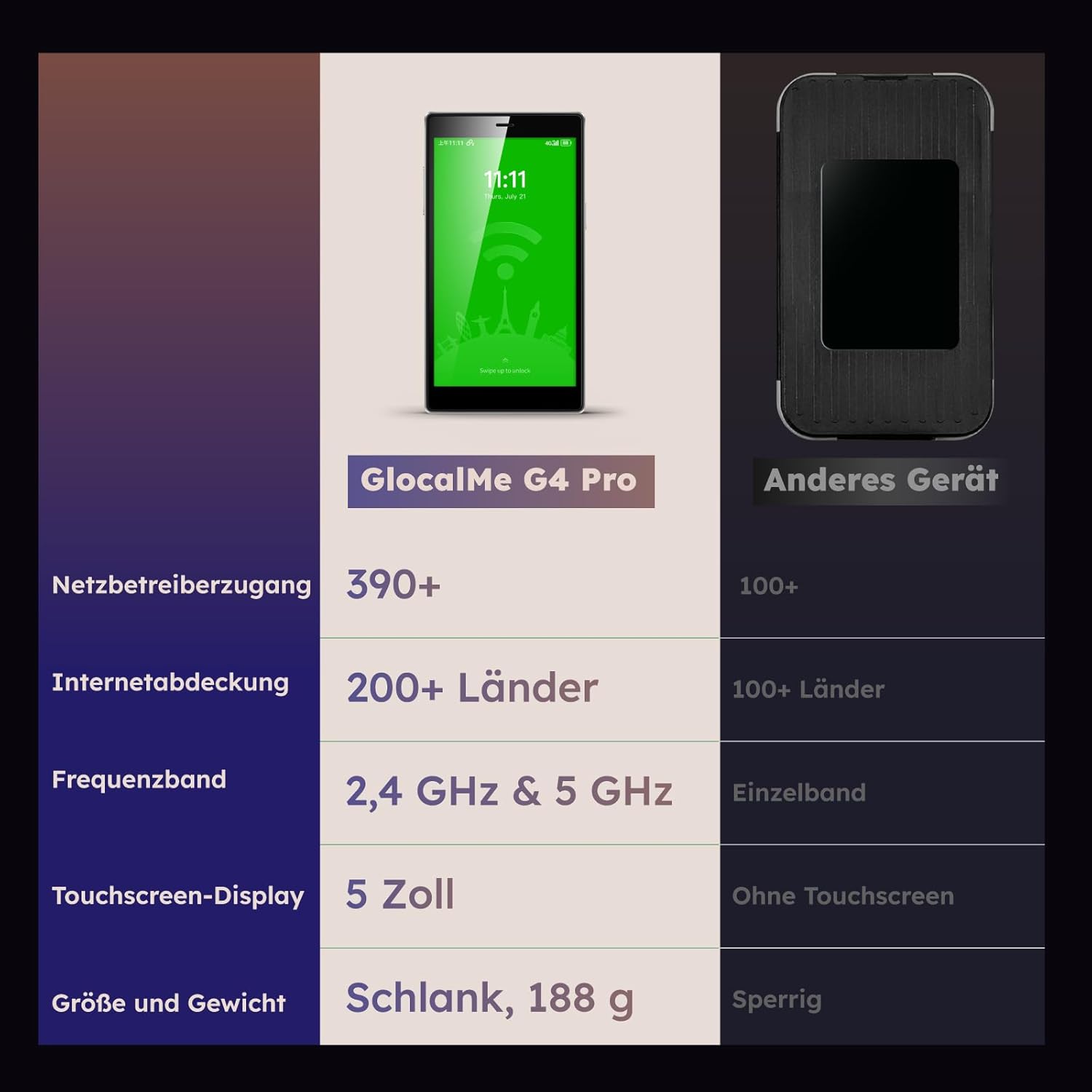 🌎【Flexible Datenpläne und benutzerfreundliche App】Mit der GlocalMe-App können Sie Ihre Hotspots einfach verwalten und Datenpläne erwerben. Sie können Verkehrsdienste pro Tag, pro Monat, pro Region oder pro GB kaufen. Bezahlen Sie, wie Sie wollen, es gibt keine Verträge oder Roaming-Gebühren.
