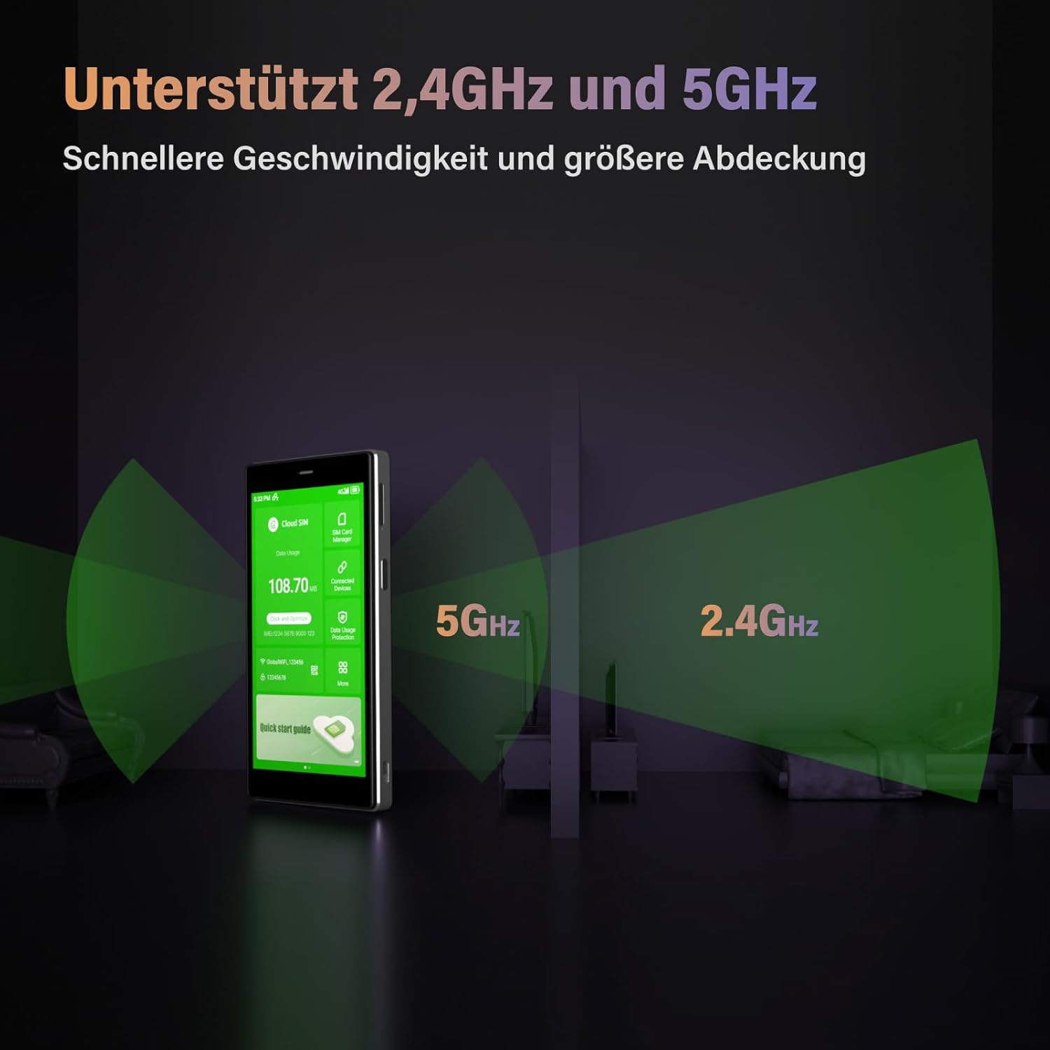 🌎【Dualband WiFi und Großer 5″ berührbarer Bildschirm】G4 Pro Portable Hotspot WiFi unterstützt 2.4GHz und 5GHz Bänder. Sie können eine schnellere Internetgeschwindigkeit und eine stabilere Internetverbindung genießen. Einfache Überprüfung des Datenflusses, des Signalstatus, des Schutzes des Datenverkehrs, der Verwaltung der schwarzen Liste und anderer Operationen über den visuellen Bildschirm.