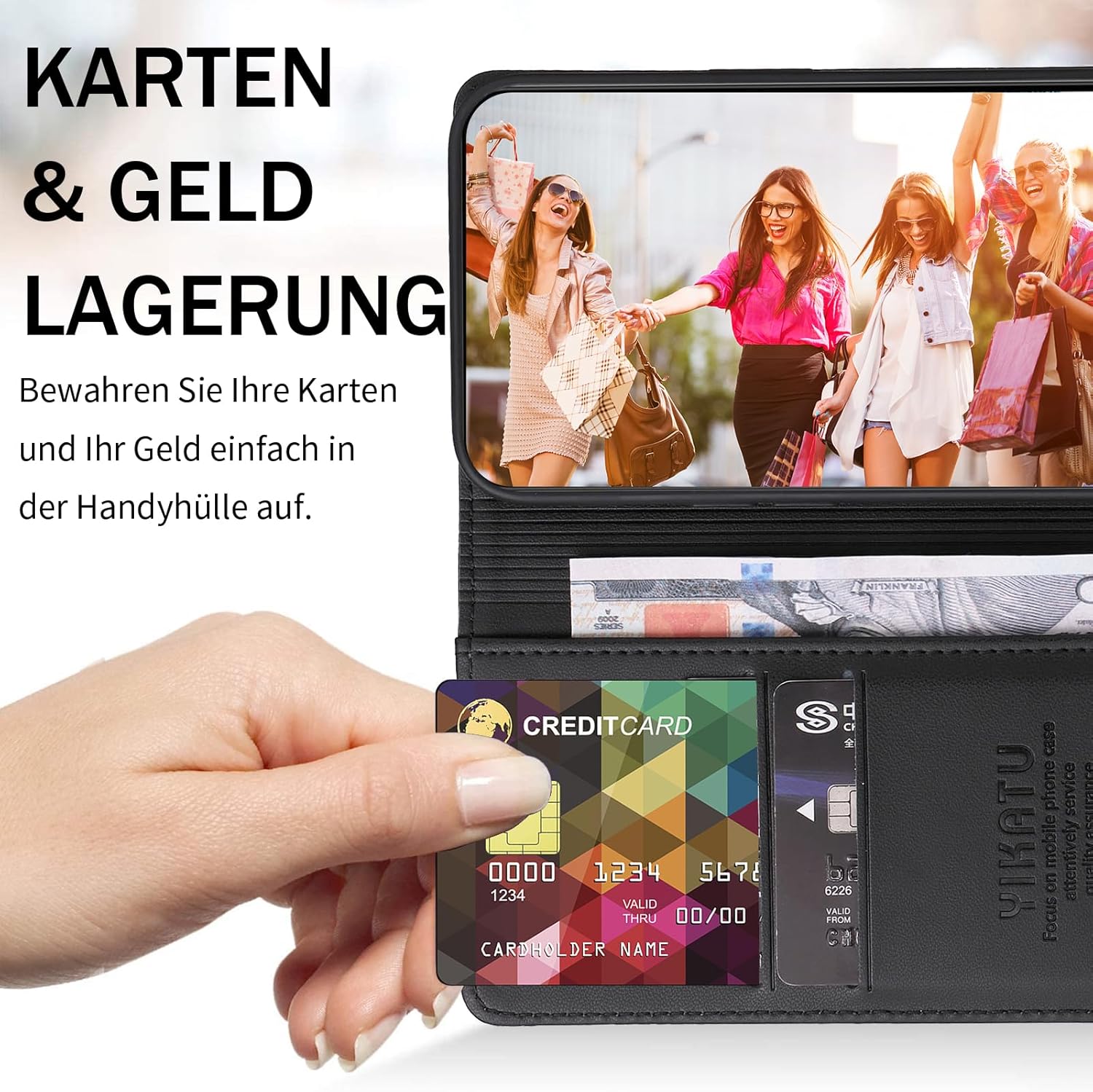 Handyhülle für iPhone 15 Hülle [mit Schutzfolie][Premium PU Leder] Klapphülle Kartenfach Magnetic Ständer Flip Case Cover Etui Tasche Schutzhülle für iPhone 15 6.1“ (Black)