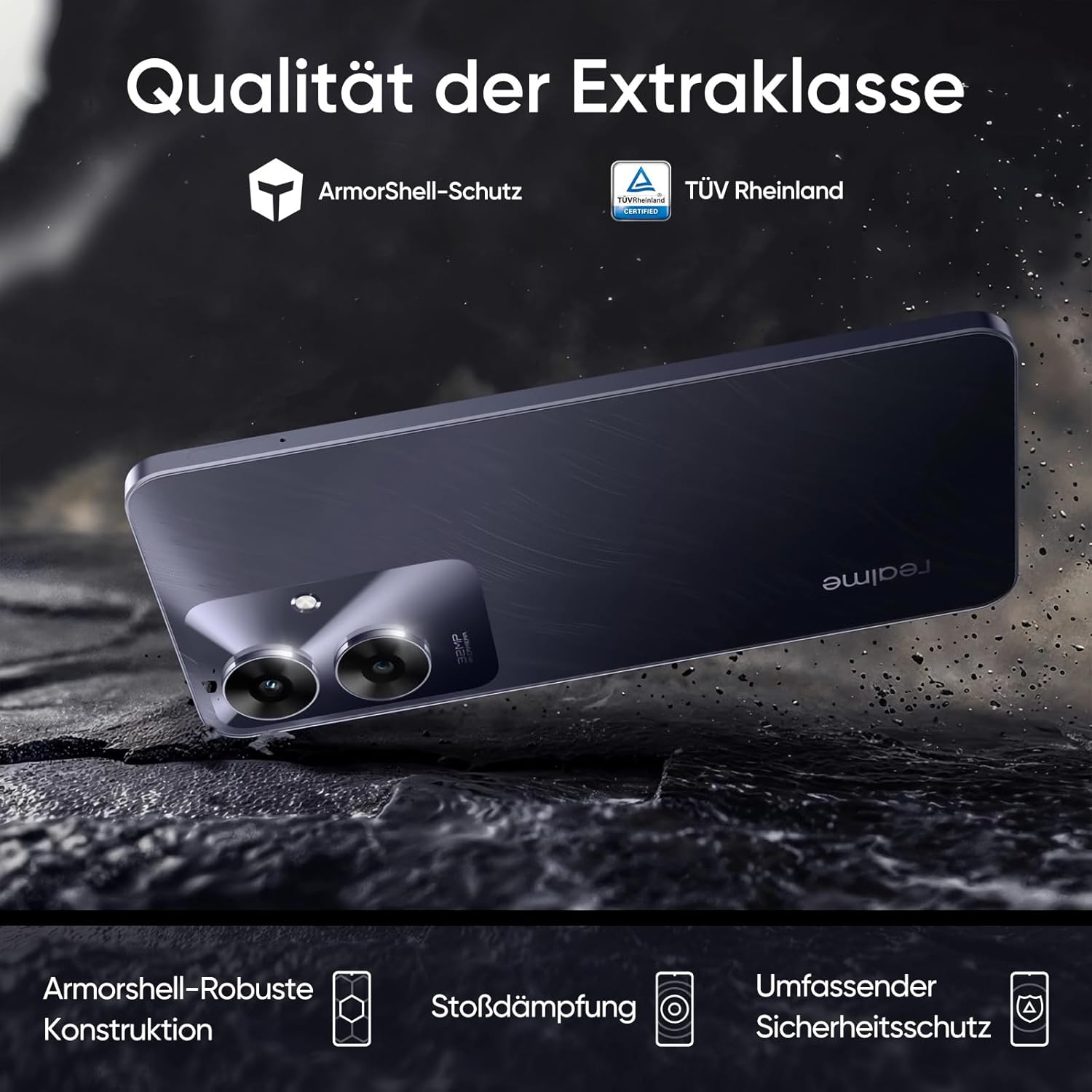 Wasserdicht und staubdicht IP64: ArmorShell-Schutz hält die Hauptkomponenten und interne Anschlüsse sicher, um sicherzustellen, dass Ihr Telefon den unerwarteten Überraschungen widersteht, die das Leben Ihnen bereithält.