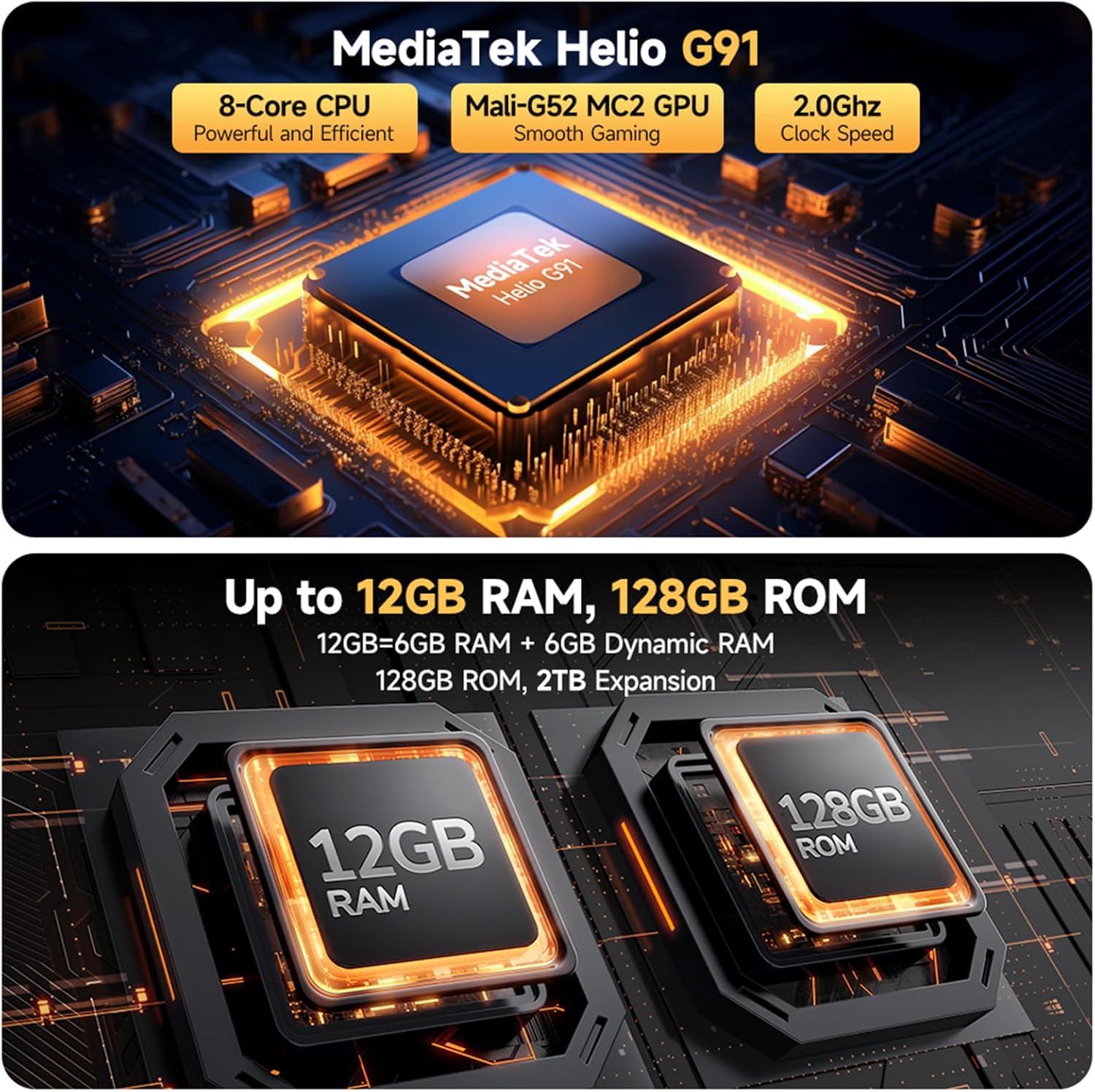 【MediaTek Helio G91, 12GB + 128GB/2TB, Upgradable to Android 15】Das Ulefone Armor X32 ist mit dem MediaTek Helio G91 Octa-Core 2,4 GHz Prozessor ausgestattet und nutzt Android 14 für eine reibungslose Performance. Es bietet 12GB RAM (6GB RAM + 6GB virtuelles RAM)+ 128GB ROM, erweiterbar auf 2TB mit einer microSD-Karte, um das Herunterladen und Teilen zu einem Kinderspiel zu machen.