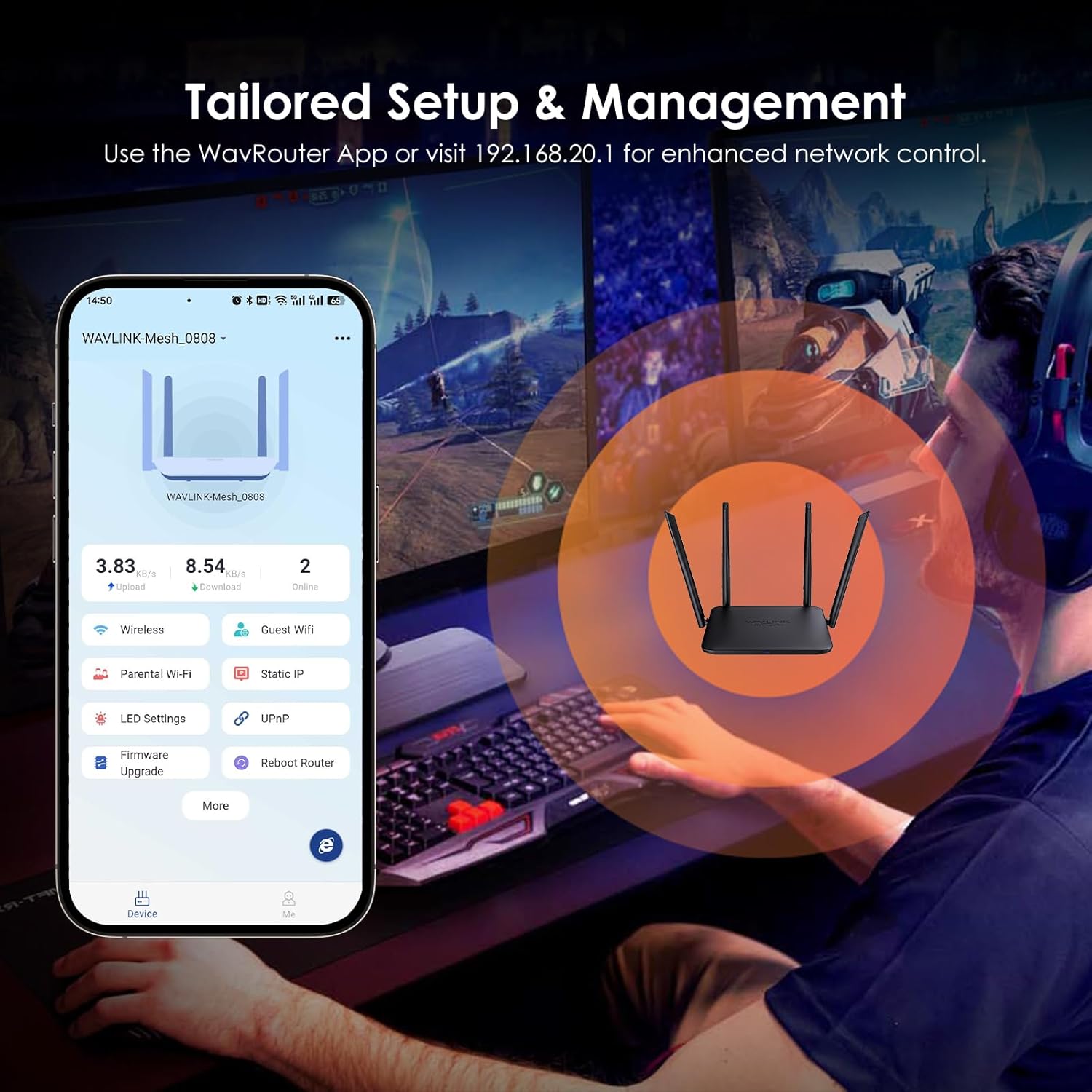 【Mühelosen Setup & Management】 Konfigurieren Sie Ihren WLAN 7 -Router schnell mit der intuitiven Wavrouter -App. Entdecken Sie Funktionen wie Guest Wi-Fi, Elternsteuerungen und QOS-Einstellungen für eine verbesserte Netzwerksteuerung. Guided -Schritte sorgen dafür, dass ein Swift -Setup -Vorgang und Ihr Netzwerk in kürzester Zeit reibungslos ausgeführt werden.