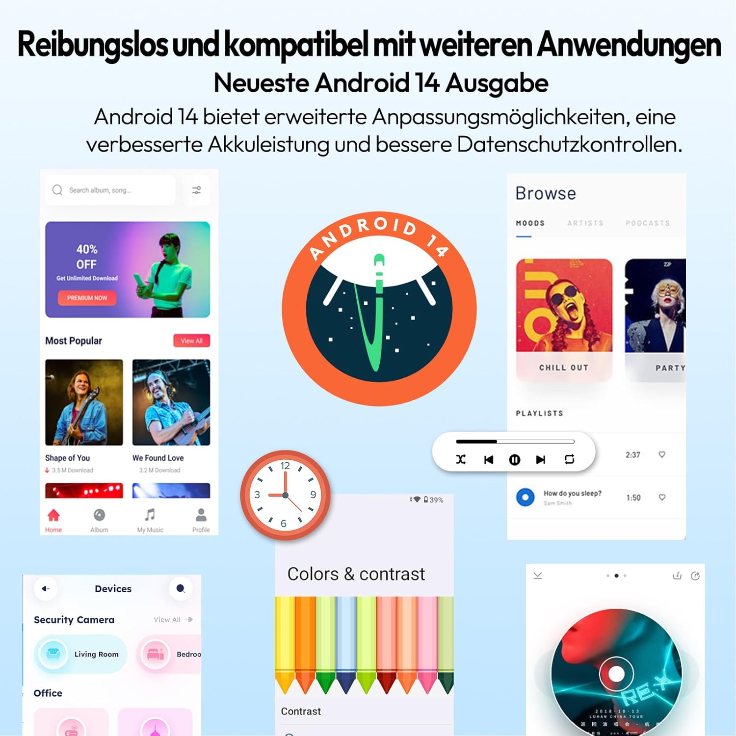 【Verbessern Sie Ihr Smartphone-Erlebnis】Das handy läuft auf dem leistungsstarken Android 14-System und bietet ein intelligenteres, effizienteres und bequemeres Benutzererlebnis. Die Benutzeroberfläche wurde sorgfältig entworfen, um Einfachheit und Benutzerfreundlichkeit zu priorisieren und eine reibungslose und intuitive Navigation zu gewährleisten. Darüber hinaus ist das elegante und moderne Interface-Design nicht nur ästhetisch ansprechend, sondern trägt auch zum Gesamtcharme bei.